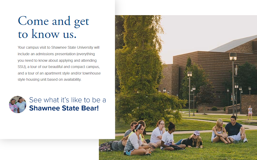 Taking a personalized campus tour is the best way to see for yourself if Shawnee State is the right fit for you. Our tours are offered in small groups, giving you a more engaging and interactive experience as you explore campus. Spend the day experiencing life as a Shawnee State student, asking questions, and exploring campus and we're confident you'll feel right at home.